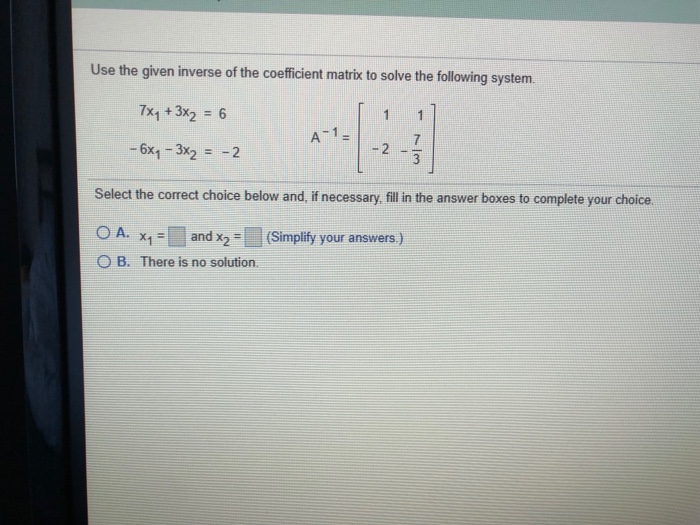 Email me at this address if my answer is selected or commented on. Hence ad bc 22. Solution for Use the given inverse of the coefficient matrix to solve the following system.